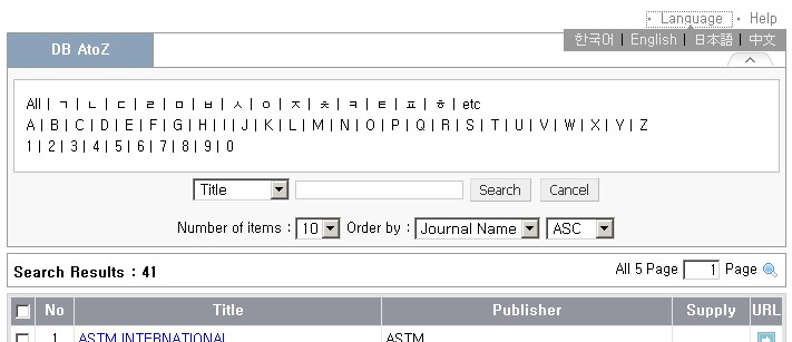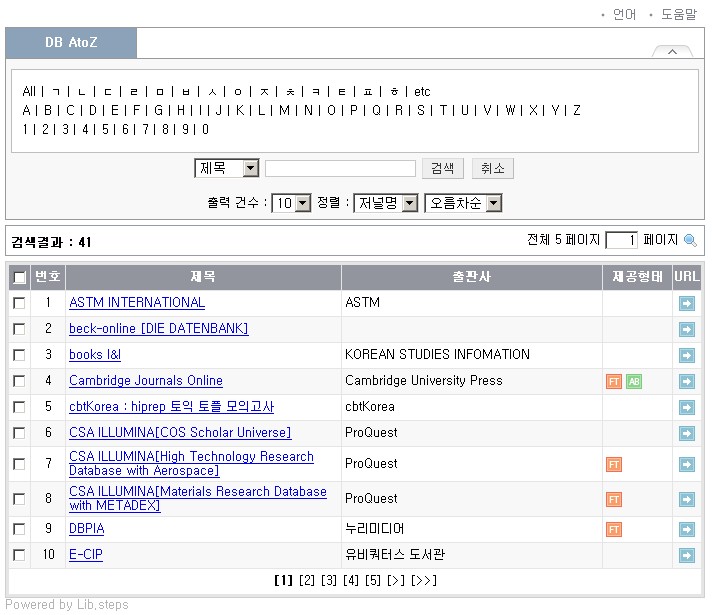 Database AtoZ 검색