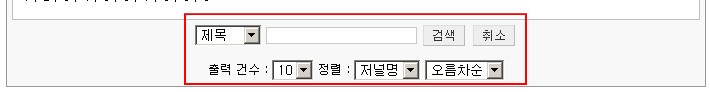 하며 페이지당 출력 갯수와 정렬 방식을 선택할 수 있습니다.