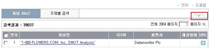 을 클릭하면 검색란 영역을 숨기거나 나타낼 수 있습니다. 이를 이용하면 좀 더 넓게 저널 리스트를 볼 수 있습니다.
