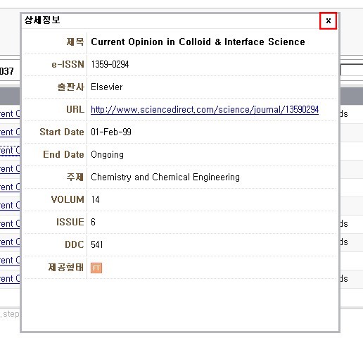 이 가능하며 대분류 클릭시 해당 대분류 저널정보와 중분류 DDC 정보가 출력됩니다.